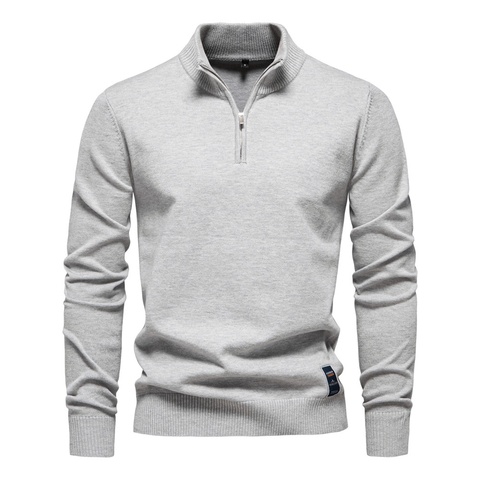 2025 suéter de invierno con media cremallera ajustado para hombre con cuello de pie, nuevo Top de punto de Color sólido, ropa de dinero antiguo, conjuntos para hombre